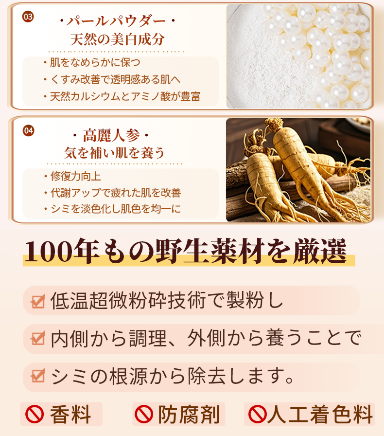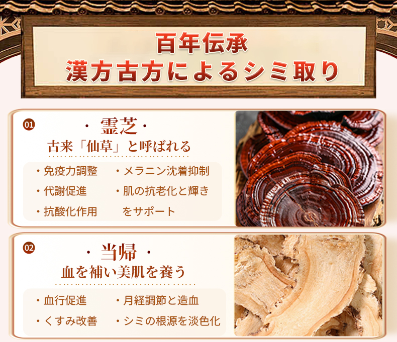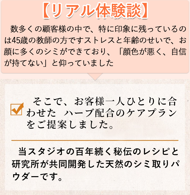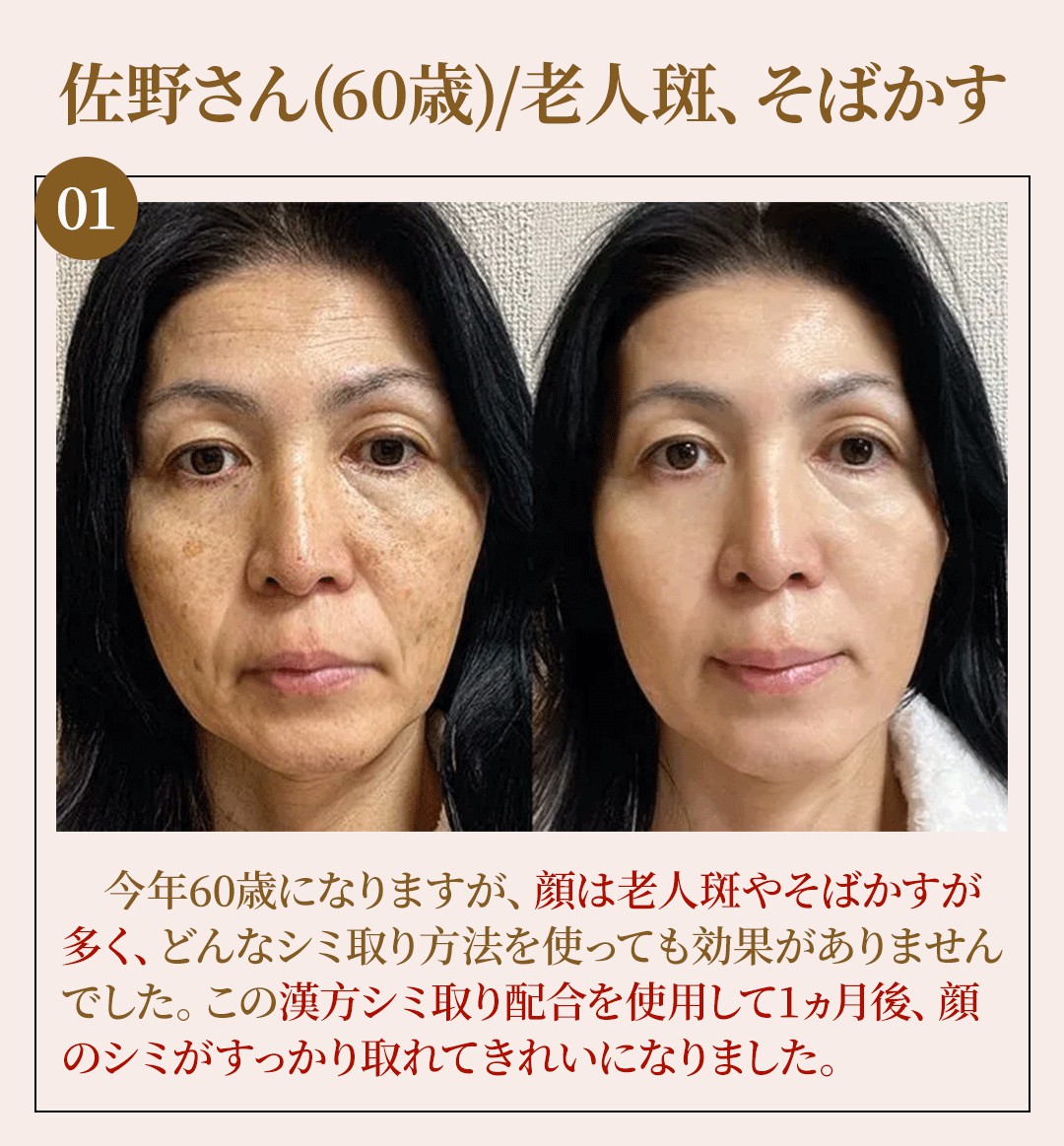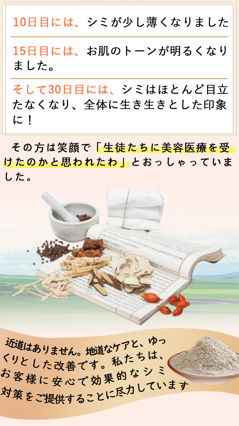 こちらの百年のシミ取り漢方配合は、シミ取り商品の中で